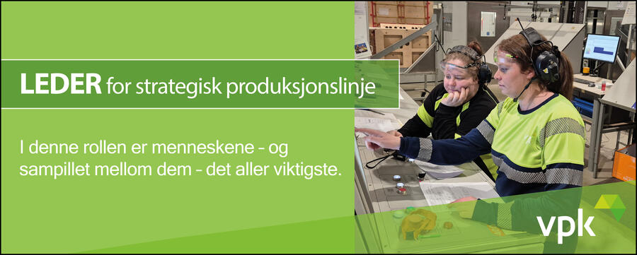 VPK søker leder for strategisk produksjonslinje. I denne rollen er menneskene – og samspillet mellom dem – det aller viktigste.